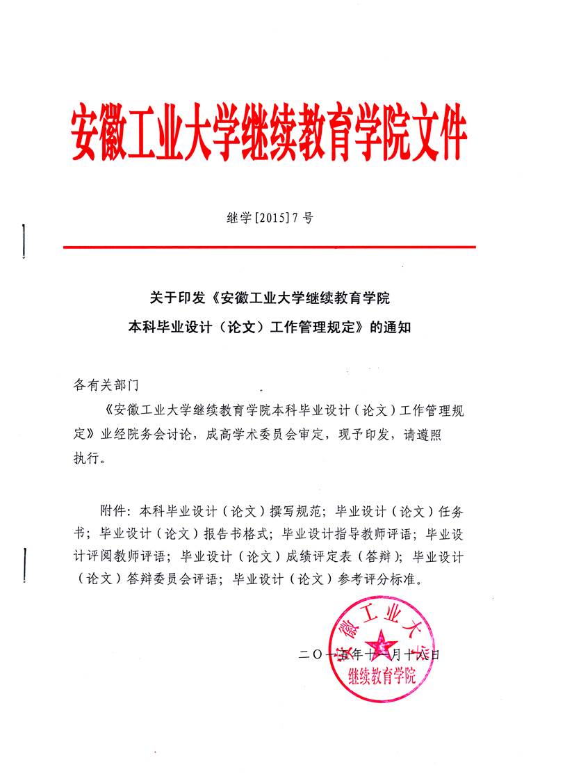 (4)学院学历部、函授部应分别认真做好业余、函授各专业毕业设计(论文)工作的布置与检查工作,着重查工作安排、进度、教师指导情况,协调解决毕业设计(论文)过程中遇到的突出问题。